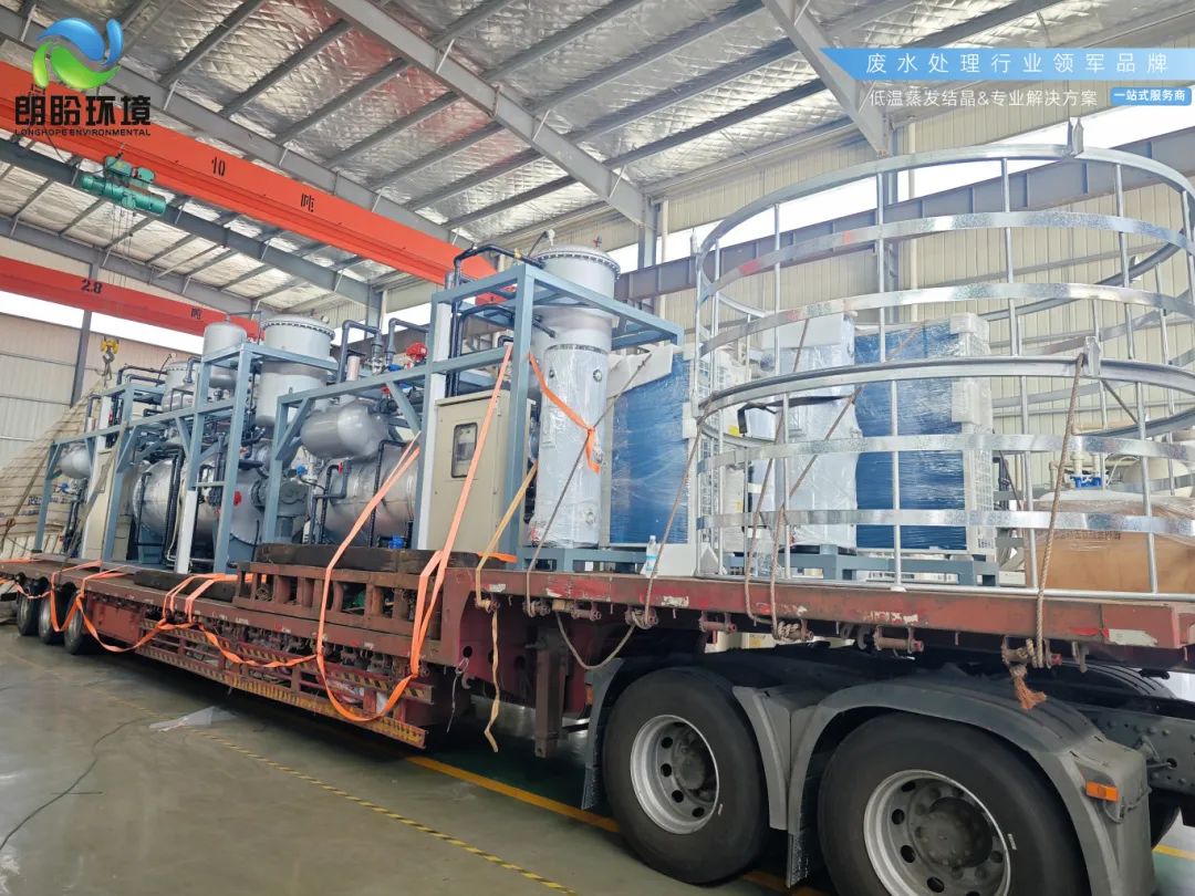 河南某企業(yè)訂購日處理100噸的低溫熱泵真空蒸發(fā)器已于七月完成交付,10臺日處理3噸的低溫熱泵真空結晶器于今日裝車順利發(fā)車。